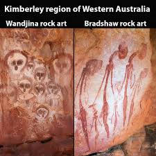 Other sites say these paintings are Gwion or Bradley rock figures, located in the Kimberly region of Western Australia, and others that they’re from caves in Utah, in the US, both from 2 to 4 thousand years old.