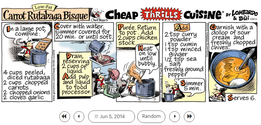 1. ‘Where Evil Grows,’ 2. ‘ While My Guitar Gently Weeps,’ 3. ‘ Whip It,’nd 4. ‘White Hot,’ and the ‘Cheap Thrills Cuisine’ recipe 5. ‘Carrot Rutabaga Bisque (low fat).’