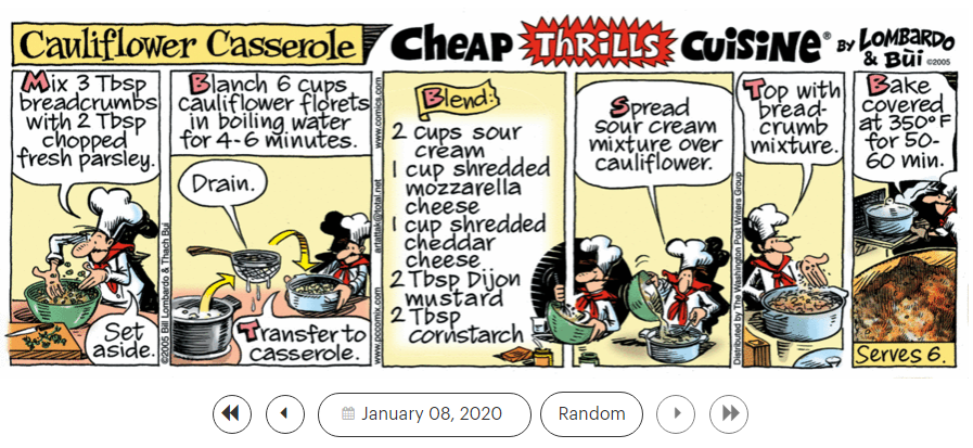1. ‘White Rabbit,’ 2. ‘White Room,’ 3. ‘White Wedding,’ and 4. ‘Whole Lotta Love,’ and the ‘Cheap Thrills Cuisine’ recipe Cauliflower Casserole.’