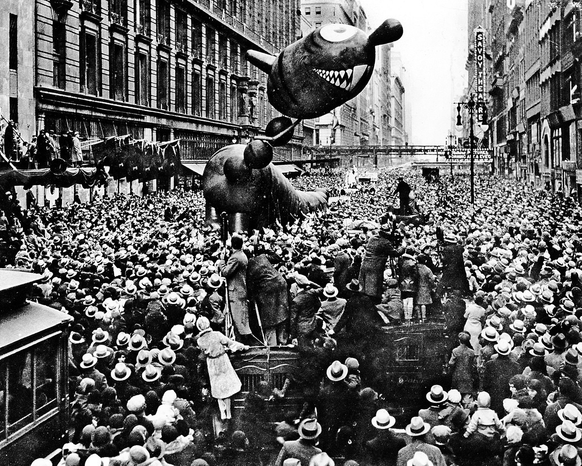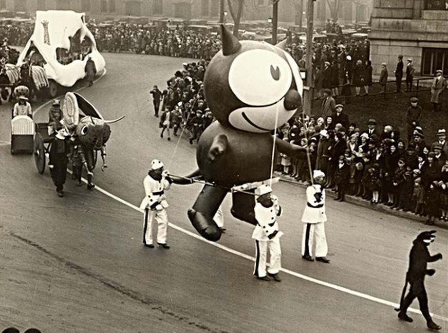 Macy’s has apparently stated that this air filled Felix the Cat was the first character balloon ever in their Thanksgiving Day Parade, appearing in 1927.