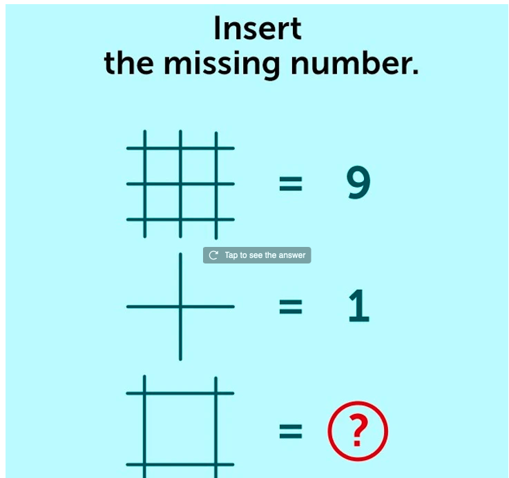 The design is why I used subtraction. All three figures consist of a number of horizontal and vertical lines the same length, and despite there being no arithmetic sign one can choose to multiply the horizontal by the vertical or add the number of intersections to get 4, or to subtract one entire figure from another to get 8. But why has the last figure been drawn (designed) in such a way as to perfectly recreate the top figure when the middle figure is superimposed? Perhaps my former career as a graphic designer has caused me to see great significance in that fact. Were I to draw the intersection of two horizontal with two vertical lines the same length, they would not be spaced in that way. I suppose the right answer is whatever the creator of the puzzle intended, but to me, mine is the one that makes the most sense.