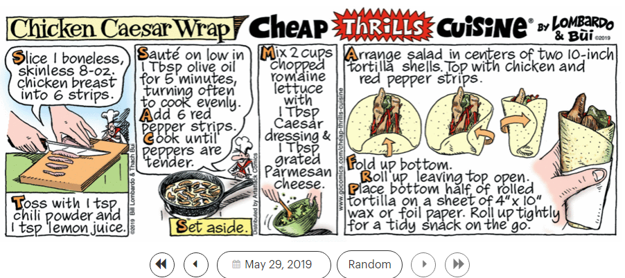 1. ‘You Me and Mexico,’ 2. ‘You Really Got Me,’ 3. ‘You Were On My Mind,’ and 4. ‘Young Girl,’ and the ‘Cheap Thrills Cuisine’ recipe 5. ‘Chicken Caesar Wrap.’