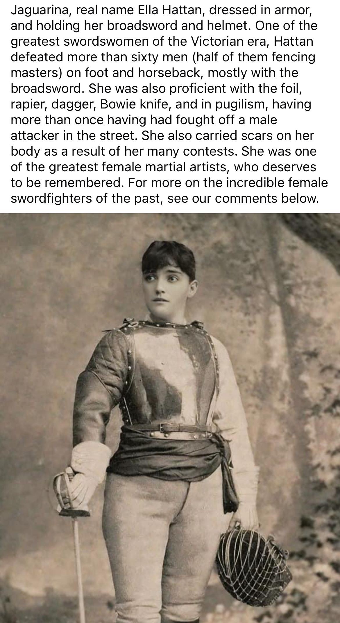Wikipedia calls her a fencer and actress, and doesn’t mention that other stuff. I’ll have to look her up… But not tonight….