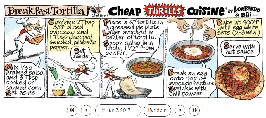 ‘ Tears of a Clown,’ ‘ Teen Angel,’ ‘ Tell Laura I Love Her,’ and ‘Telstar,’ and the ‘Cheap Thrills Cuisine’ recipe ‘Breakfast Tortilla.’