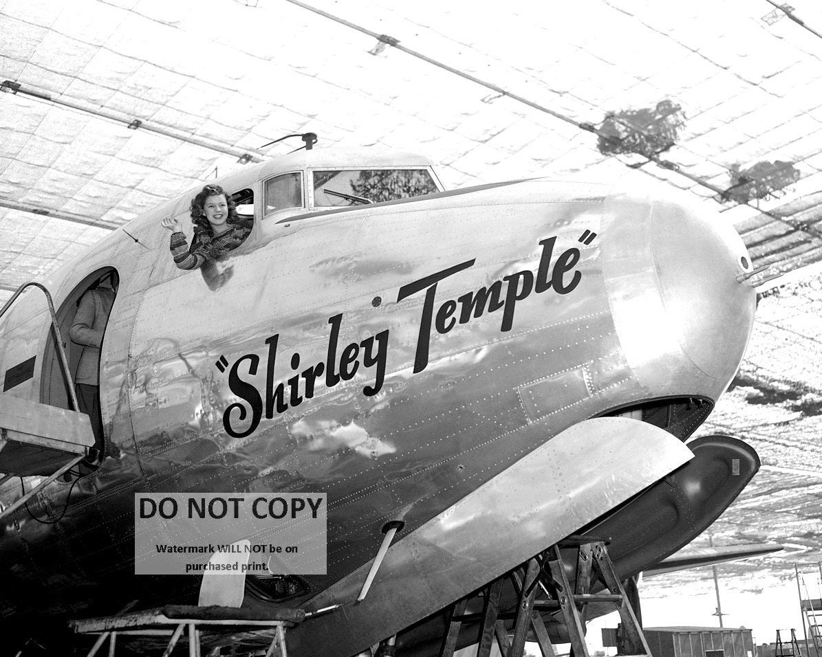“Shirley Temple tries out the big four-engine Army transport C-54 which she had just christened with a pat and a kiss, at the Douglas plant, Oct. 12, 1944 in Santa Monica. This is the size plane used to transport wounded men across the Pacific and to take President Roosevelt, Prime Minister Churchill and others across the Atlantic. Shirley’s next movie will be “I’ll Be Seeing You.” (AP Photo)”