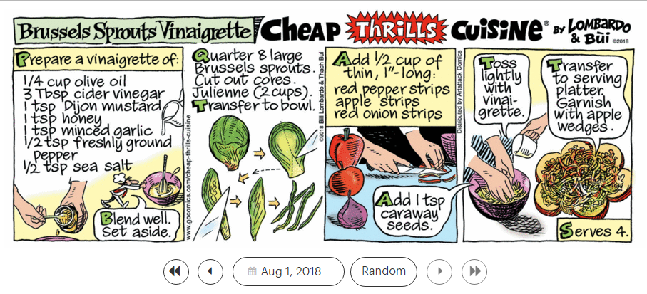 ‘ The (female dog) Came Back,’ ‘The Boys in the Bright White Sports Car,’ ‘The Devil Sent You To Laredo,’ and ‘The First Cut is the Deepest,’ and the ‘Cheap Thrills Cuisine’ recipe ‘Brussels Sprouts Vinaigrette.’