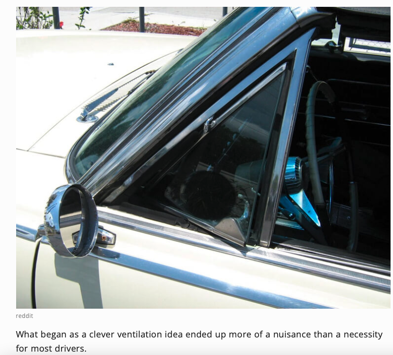 The rear wings were the only.windows in our car that children were allowed to touch. The excuse my parents used was that we might fall out if we.rolled down the big ones.