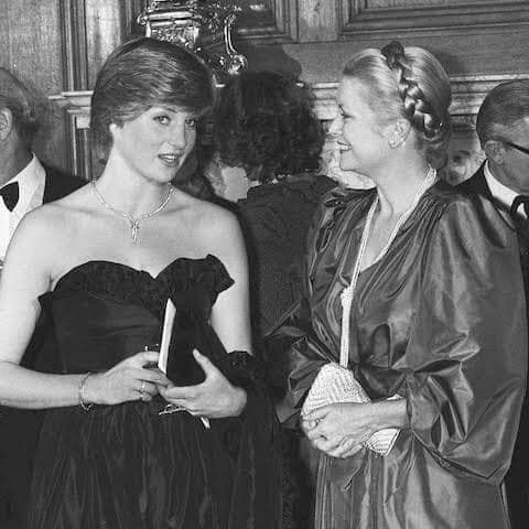 Lady Diana Spencer, 19 years old, in 1981, not yet Princess Diana, but engaged to Prince (now King) Charles, meeting Princess Grace, of Monaco, the former Grace Kelly.