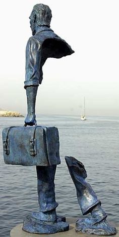 Part of a series of sculptures (at least 30) titled “Les Voyageurs” by the sculptor.