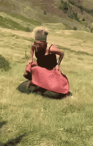 It looks to me like she was trying to lie down in the sun, not slide down the hill….