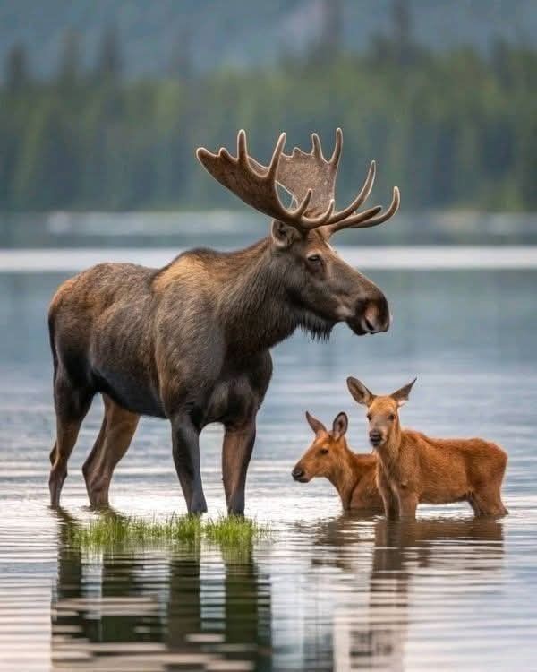 Poppa’s turn to babysit? (Females don’t have antlers…)