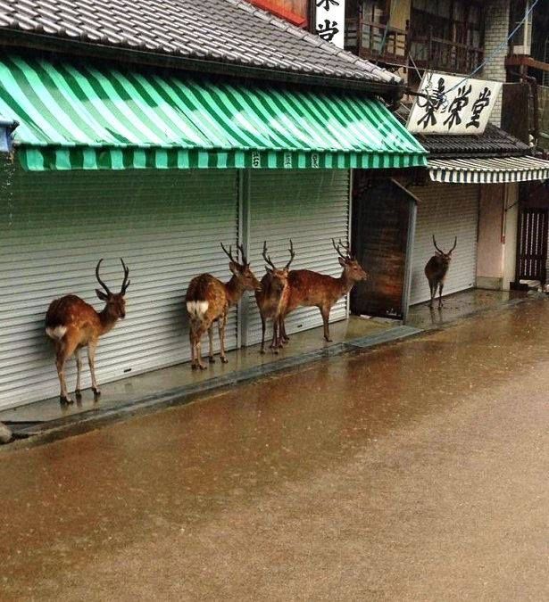 Poor deers. Stuck in the rain… and they’re not rain deer.