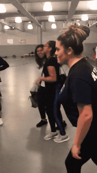Kind of, it’s where one friend will nudge another with their hip.