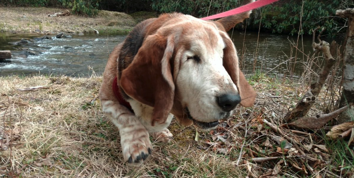 I was just thinking about this guy last night. I’m glad his caretaker gets him out in nature sometimes. He gets some exercise and fresh air, he gets to explore and enjoy all the outdoor smells, and he gets to maintain all those basset senses other than sight.