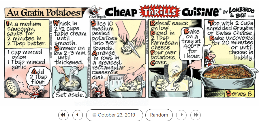 ‘Losing My Religion,’ ‘Love Grows (Where My Rosemary Goes),’ ‘Love Letters in the Sand,’ and ‘Love Potion #9,’and the ‘Cheap Thrills Cuisine’ recipe ‘Au Gratin Potatoes.’
