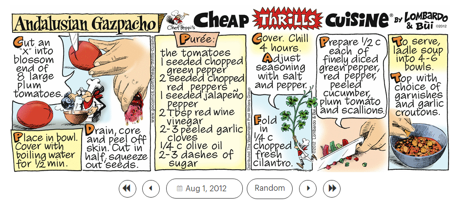 ‘Cocaine,’ ‘Convoy,’ ‘Come Dancing,’ and ‘Come a Little Bit Closer,’ and the ‘Cheap Thrills Cuisine’ recipe ‘Andalusian Gazpacho.’