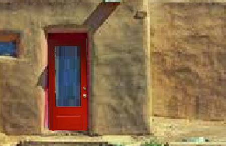 But I’d say on the far left, there’s a red door… kinda like this one, but not deep set: