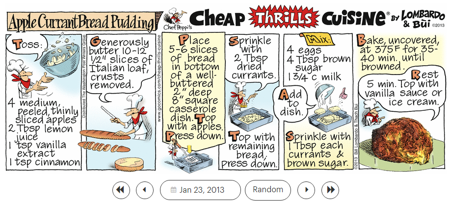 ‘Down in the Boondocks,’ ‘Dream Police,’ ‘Dream Weaver,’ and ‘Dreamer,’ and the ‘Cheap Thrills Cuisine’ recipe ‘Apple Currant Bread Pudding.’