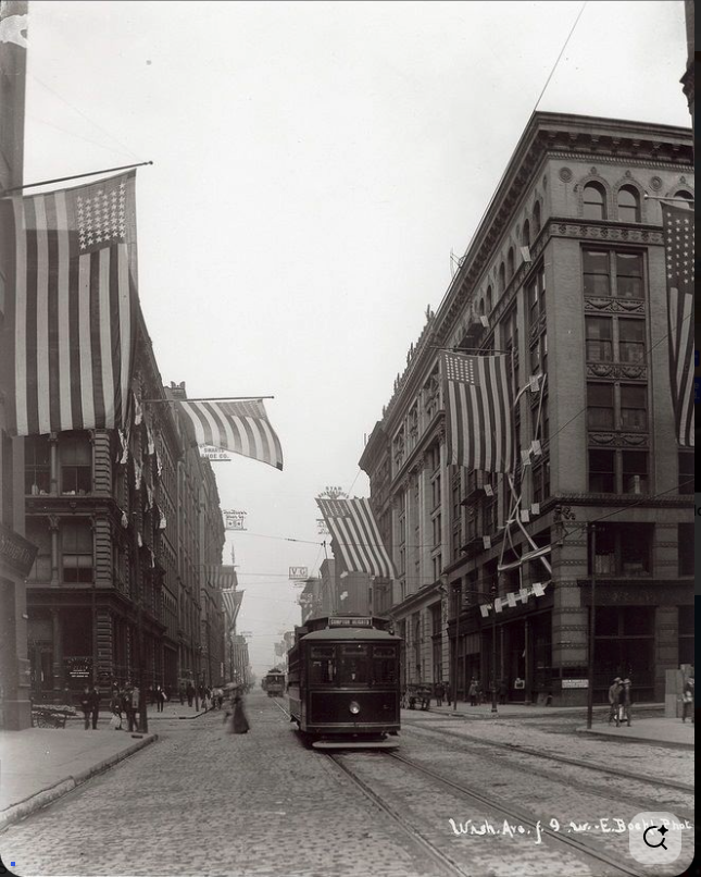 Wait… I found it on yet another site: “Washington Avenue west from Ninth Street. Photograph by Emil Boehl, ca. 1903.”
