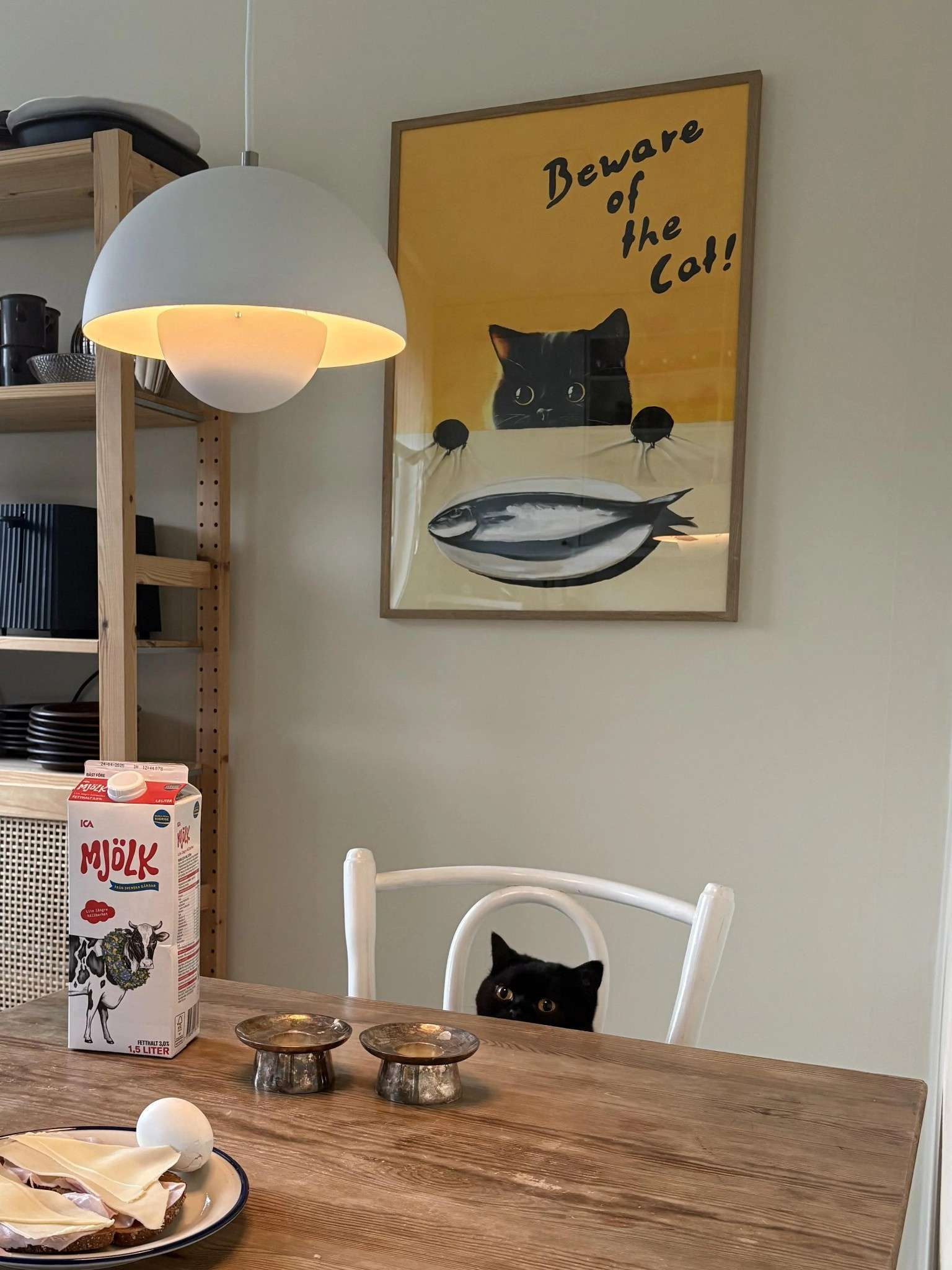 Kitty wants the mjölk.
