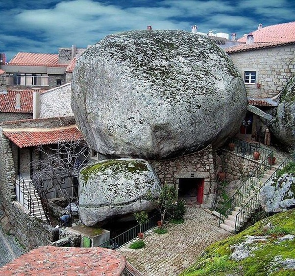 This is actually a house in the village of Monsanto, in Portugal, that had not, as I’d assumed, been nearly destroyed by a giant boulder, like a farm we saw in another image months(?) ago.