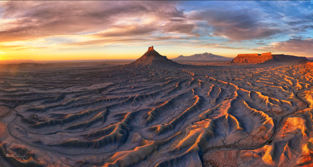 “Factory Butte is a prominent, 6,302-foot flat-topped sandstone formation in central Utah, near Hanksville, known for its otherworldly, Mars-like landscape of barren badlands, deep sand, and colorful rock formations. It is a popular destination for off-road vehicle (OHV) enthusiasts, hikers, and photographers, offering a unique geological experience with its Mancos Shale badlands and underlying Ferron sandstone. The area is also recognized for its appearance in films and commercials.’