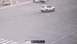 If I was the biker and recognized the guy driving the Jeep-like thing as an antagonist, I think I might be unable to resist dragging him from the car and punching his lights out. Otherwise, call emergency services and see how bad a shape he is in already.