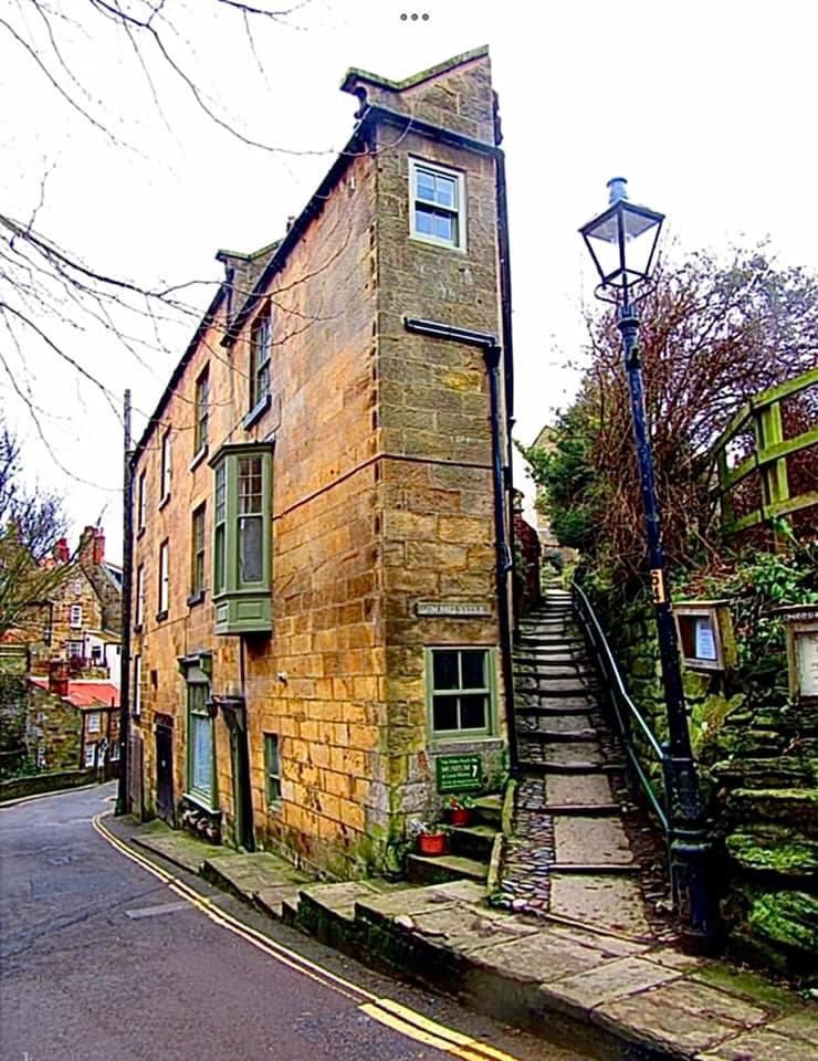 The stairs are actually a little street, called, I believe, Jim Bellโs Stile, leading up to a tea shop and a museum.
