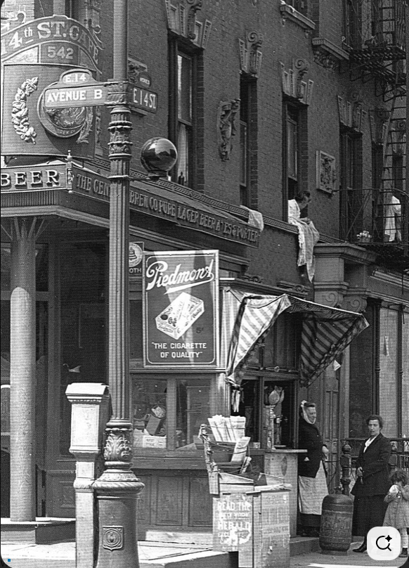 East 14th and Avenue B is in the Lower East side of Manhattan… a few sites said it was 1918. The area may at that time have been called Germantown. Descriptions differ, but I saw no conflicting ones, just differences in timing.