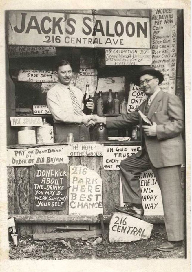 “Jacks Saloon Bar at Happy Hollow. An amusement park of sorts, Happy Hollow was established in the late 1880s or early 1890s by Norman McLeod off Central Avenue.. Nearly everyone that lived near Hot Springs in the early 1900s has one or more photographs taken there.